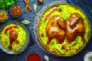 Kuwaiti cuisine is a fusion of Arabian, Iranian, and Mesopotamian cuisines. Kuwaiti cuisine is part of the Eastern Arabian cuisine. A prominent dish in Kuwaiti cuisine is machboos, a rice-based dish usually prepared with basmati rice seasoned with spices, and chicken or mutton. Seafood is a significant part of the Kuwaiti diet, especially fish. Mutabbaq samak is a national dish in Kuwait. Other local favourites are hamour (grouper), which is typically served grilled, fried, or with biryani rice because of its texture and taste; safi (rabbitfish); maid (mulletfish); and sobaity (sea bream). Kuwait’s traditional flatbread is called Iranian khubz. It is a large flatbread baked in a special oven and it is often topped with sesame seeds. Numerous local bakeries dot the country; the bakers are mainly Iranians (hence the name of the bread, “Iranian khubuz”). Bread is often served with mahyawa fish sauce.